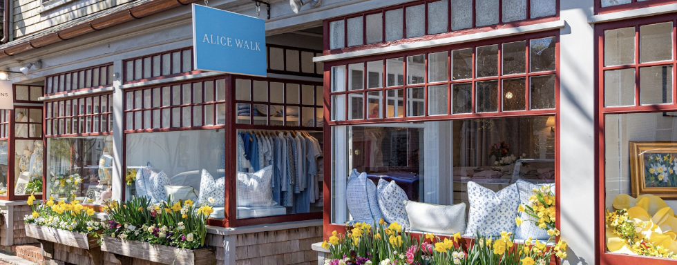 She has a beautiful shop in Nantucket. Her designs are found online as well. “A delicious pop of color. A delicate hand-painted detail. An unexpected texture. Every piece in the Alice Walk collection begins with incredible, one-of-a-kind fabrics from the world’s finest textile mills.