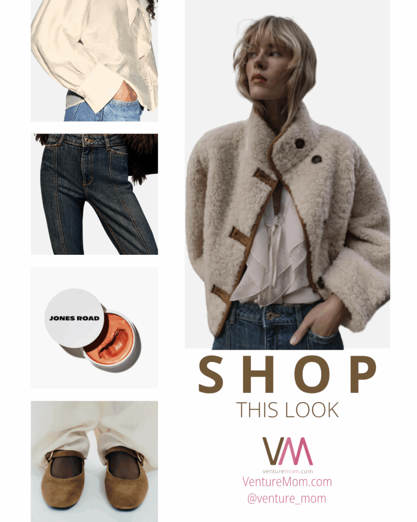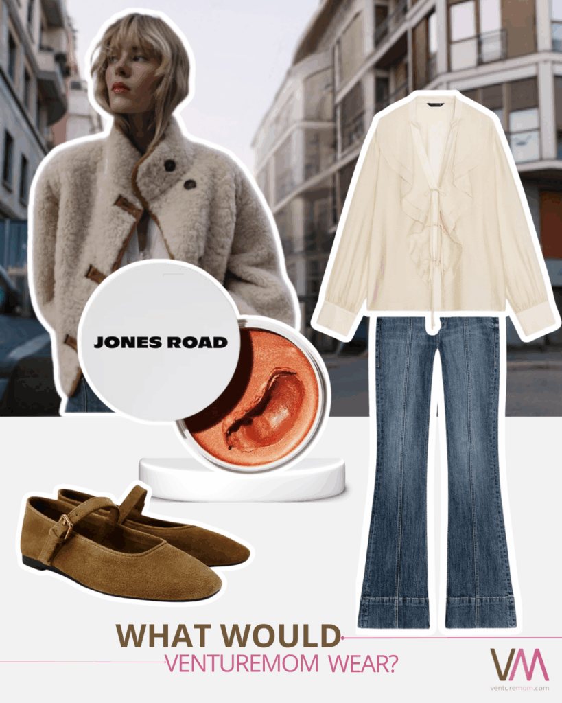 Sometimes you want a fashion fix without breaking the bank. Zara has some great finds like this reversible faux suede jacket, perfect for fall. Wear your favorite jeans or these seamed flared ones with a ruffle top. And I’m loving these darling brown strapped ballet flats – so darn cute. Use your @JonesRoadBeauty miracle balm for that glow you crave.